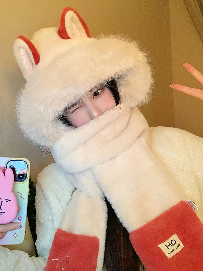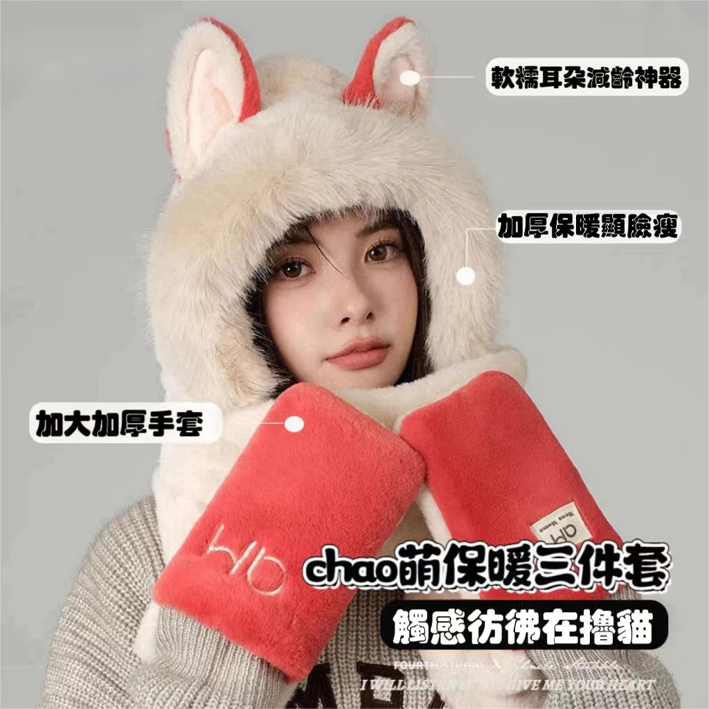 7分鐘前冬季爆款#火狐狸圍巾 帽子一體 保暖 圍脖 日韓 可愛 女生 百搭 情人節 春節 禮物 生日禮物 交換禮物 - 【狂殺特賣】團購三入組$1399