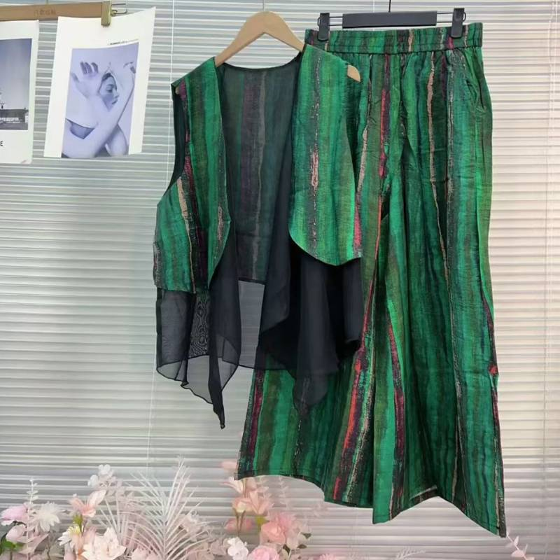 15分鐘前居然這麼顯瘦!色彩感十足的氣質馬甲套裝也太美了吧,假兩件馬甲搭配條紋寬褲,妥妥的慵懶感~ - 【限時下殺】馬甲+褲子一套 僅需 NT$998