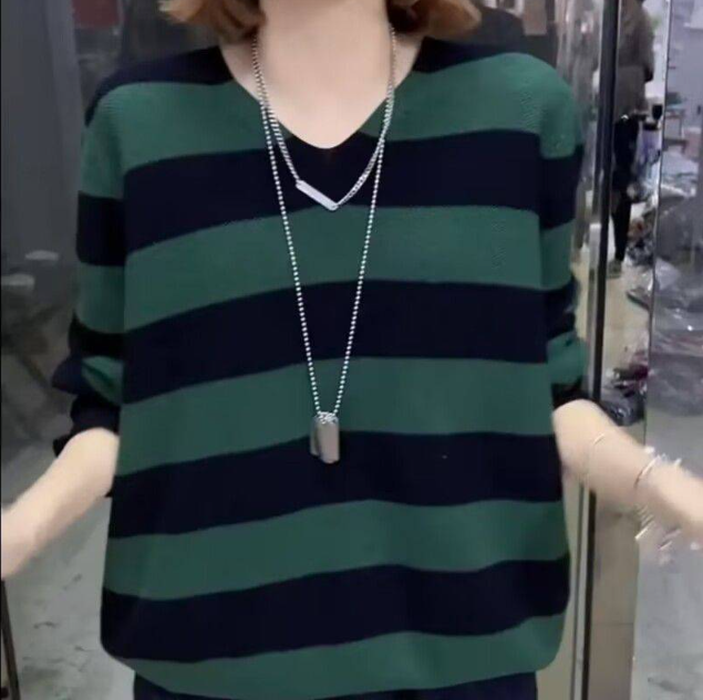 11分鐘前2024新款秋冬季寬鬆條紋針織毛衣女士打底衫 - 【試穿體驗】任選1件 僅需NT$980