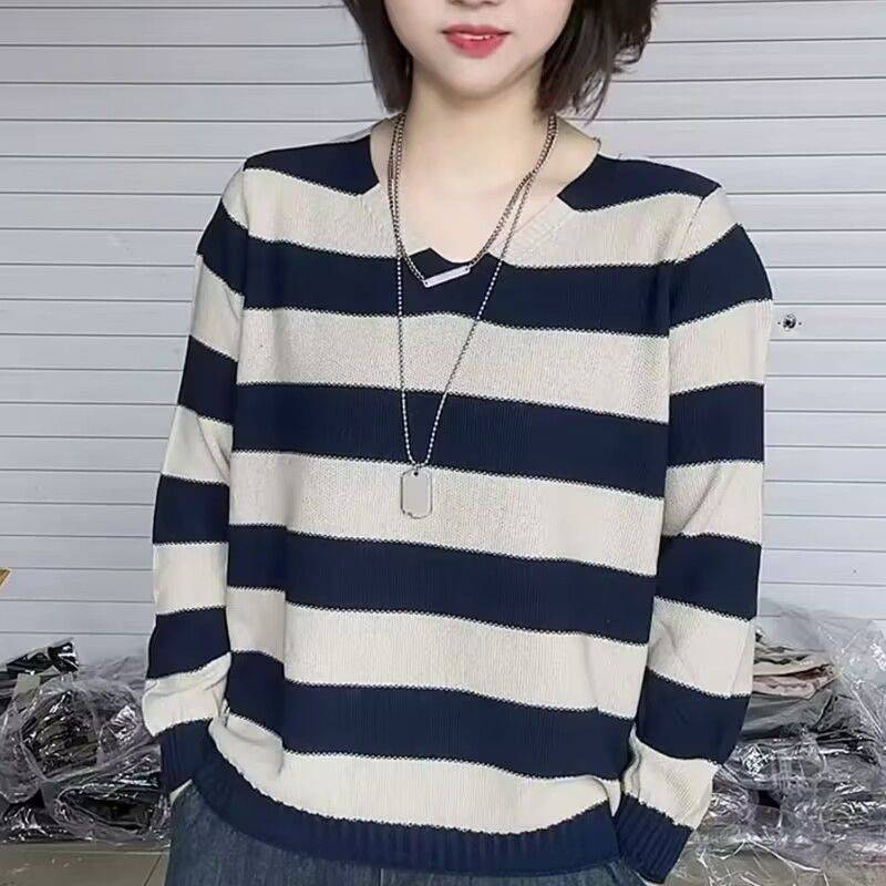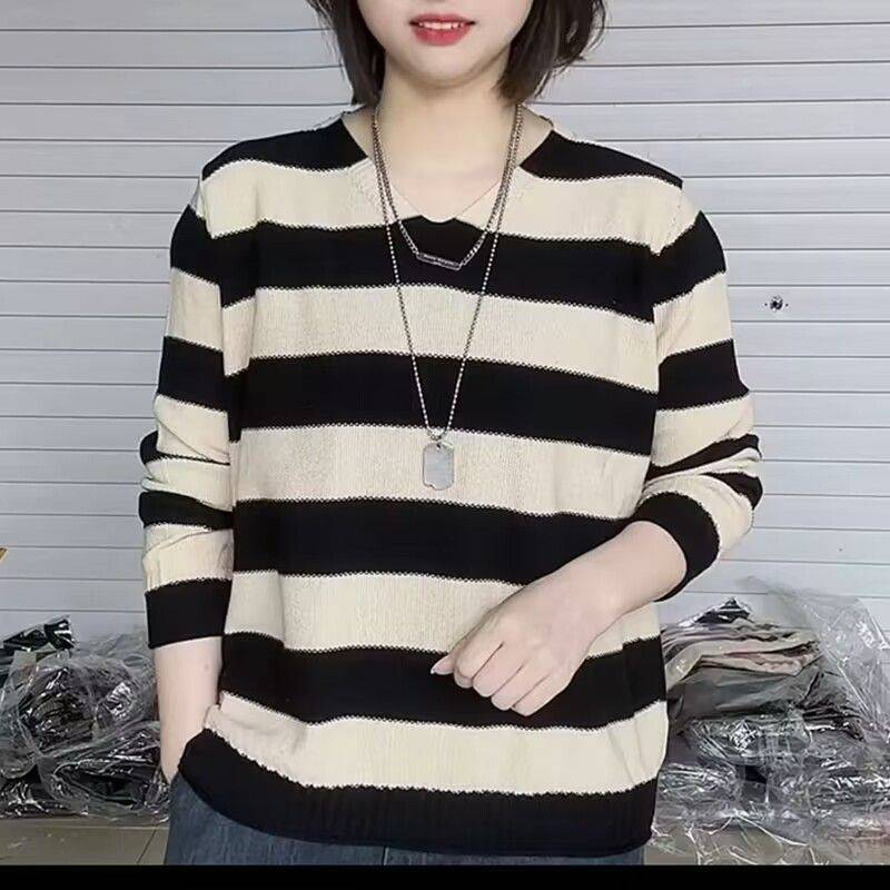 20分鐘前2024新款秋冬季寬鬆條紋針織毛衣女士打底衫 - 【試穿體驗】任選1件 僅需NT$980