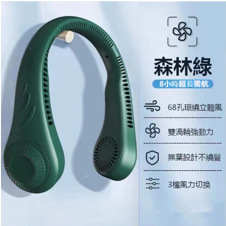 12分鐘前【24小時連續使用超長續航】#掛脖風扇 #3檔自由調節長續航 免運費 貨到付款 - 【綠色-無葉設計不饒發】